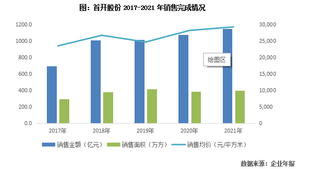 【达成全年销售目标,2022年业绩目标保守】2021年全年首开股份实现全口径合约销售金额1149亿元,同比上涨6.9%,完成全年销售业绩的104%。合约销售面积393万平方米,同比增长3.0%。销售均价29237元/平方米,较上年上升3.8%。2022年首开股份计划全部项目销售签约金额为1080亿元,计划销售面积380万平方米,销售回款1078亿元,目标较为保守,低于2021年已实现业绩。