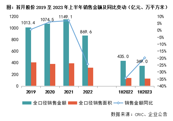 【上半年销售金额349亿元,完成全年目标的39.7%】2023年上半年,首开股份实现全口径销售金额349亿元,同比降低19.8%,完成全年880亿元销售目标的39.7%。全口径销售面积131万平方米,同比降低9%;销售均价26641元/平方米,较去年末降低2.6%。下半年,首开股份仍需积极提高货量供应、加强营销力度以提振成交去化。