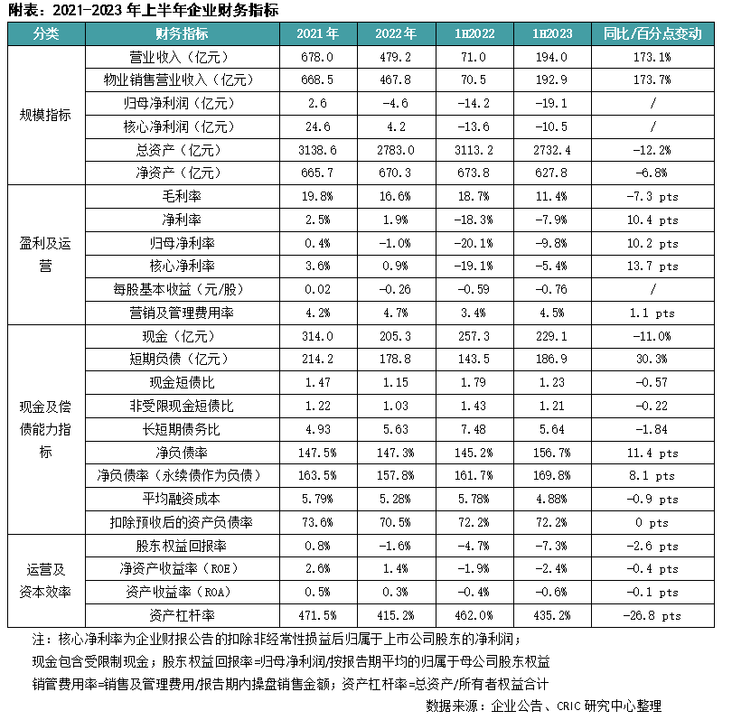 【部分负债指标仍需进一步优化以达到监管要求】截至2023年上半年末,首开股份持有现金229.1亿元,较2022末增加23.7亿元。非受限现金短债比1.21倍、长短期债务比5.64倍,保持在安全范围。净负债率156.7%、永续债作负债的净负债率169.8%、剔除预收账款后的资产负债率72.2%,较2022年末有所提升,仍需进一步优化以达到监管要求。