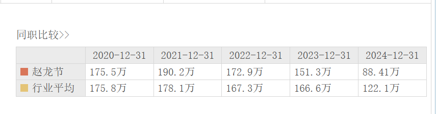 2024年,赵龙节从公司获得的税前报酬总额为88.41万元,2023年薪酬为151.31万元,同比降41.6%。