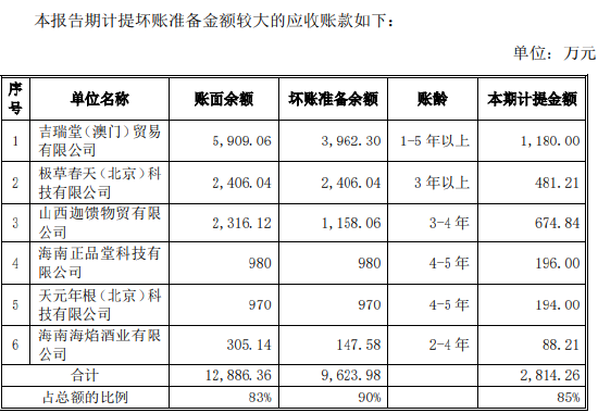 青海春天还表示,表中客户 3、6 为 2019 年公司原低端酒产品的经销商,2020 年初爆发的疫情对其经营带来极大的影响,加上公司在 2020 年为减少疫情影响对生产经营计划进行调整、开展“听花”系列高端白酒的销售,对低端产品的推广进行一定的限制,因此对其放宽了信用政策,导致相关货款回收缓慢。
