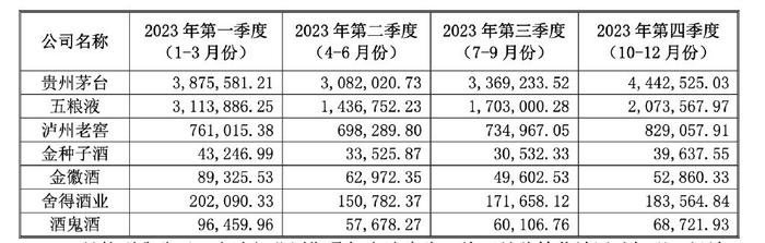 会计师认为,这一增长缺乏商业合理性。对比贵州茅台、五粮液等白酒龙头企业,可以看出几家公司四季度营收虽然略高于前几个季度,但变化相对平滑,不会出现环比增长4倍的情况。
