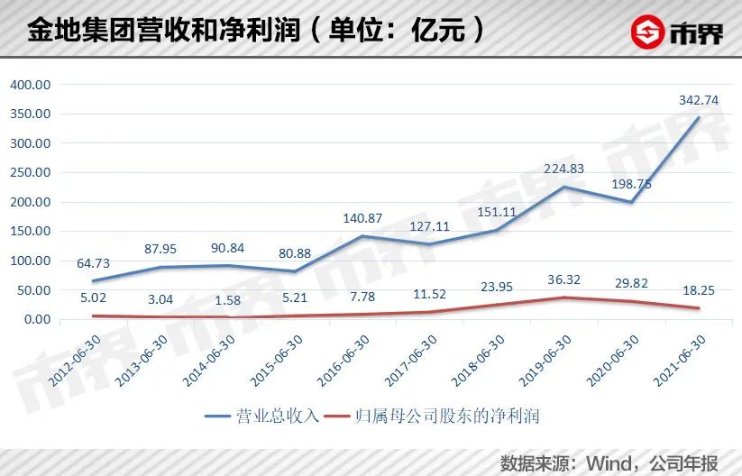 半年报显示,今年上半年,金地集团实现营业收入342.74亿元,同比上升72.45%;归属于上市公司股东的净利润18.25亿元,同比大幅下降38.79%。