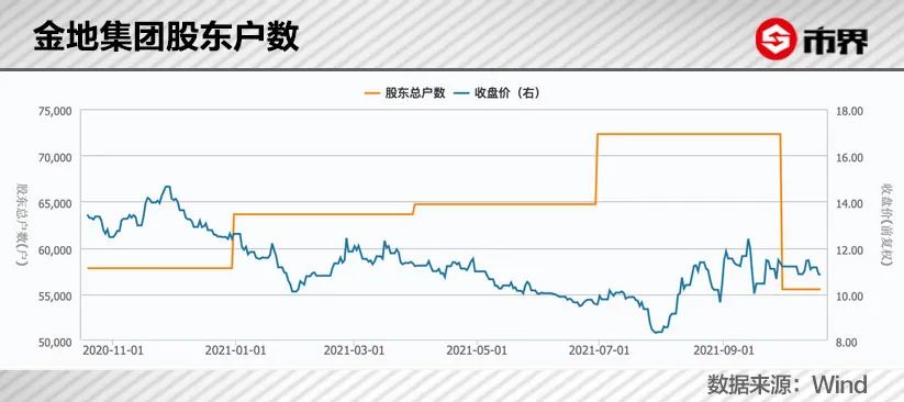 从金地的股东数量来看。从年初到现在,金地的股东数量先是从近6万户发展到超过7万户,而后又回落到5万多户。这中间大多数是在股价低位时候,割肉卖掉的。