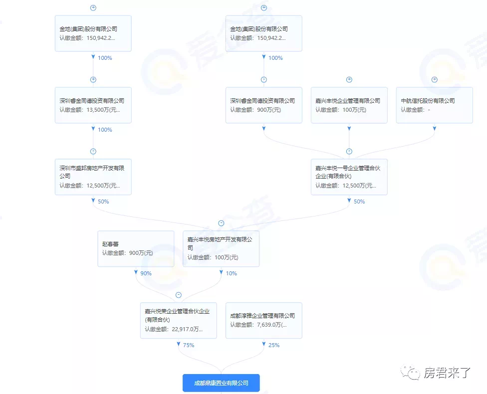 新增嘉兴悦荣企业管理合伙企业(有限合伙)为大股东,占股75%,而成都淳雅企业管理有限公司占股比例由原来的100%,下降至25%。同时,成都鼎康置业有限公司市场主体类型由原来的“有限责任公司(外商投资企业法人独资)”变更为“其他有限责任公司”。资料显示,新晋大股东嘉兴悦荣企业管理合伙企业(有限合伙)系金地集团旗下公司。