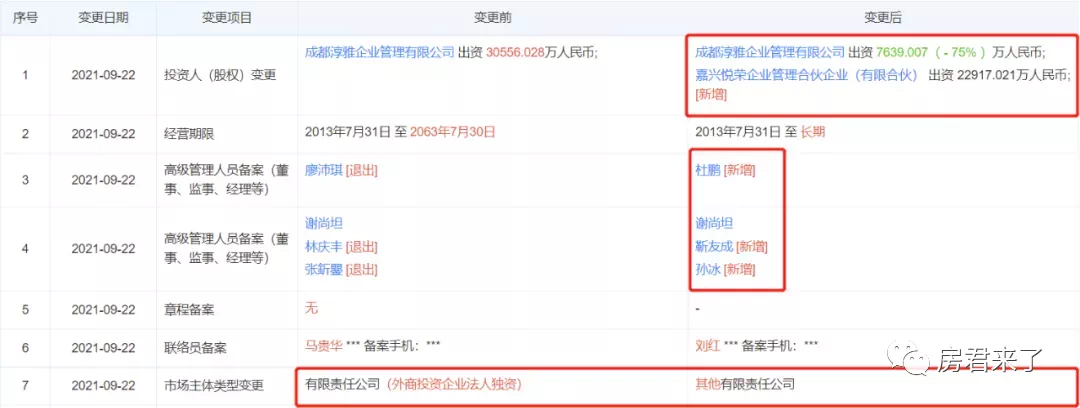 2021年9月,成都“乡林涵碧天下”项目公司——成都鼎康置业有限公司股权发生了变化。