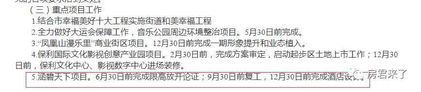 2016年3月,涵碧天下项目C地块建至地上4层、E地块建至地上13层时,就停工了,因为地块规划建设条件无法获得军用机场的航空限高批复。