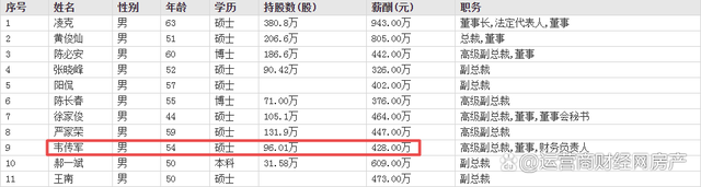 韦传军在金地集团得到的重视是显而易见的。上市公司信息公示显示,韦传军2020年从公司拿到的薪酬达到了428万元人民币,同时持有金地集团96.01万股股份,同级别的几位高管得到的报酬都同样丰厚,韦传军与他们相比还不算最多的。