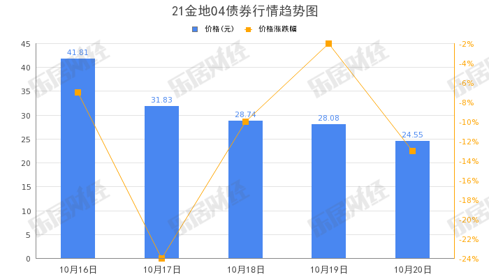 10月23日,“21金地04”(175946)早盘拉低,截至11:10,跌幅10.38%,报22.00元。总成交量4000.00手,成交额88.85万元。