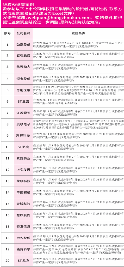 基于以上违法事实,根据相关司法解释,如果投资者在2023年5月12日收盘时持有ST龙净,并在2023年5月13日后卖出或仍持有并曾产生一定浮亏(无论是否解套)均可发起索赔,您只需将姓名、联系电话与交易记录(建议为Excel文件)发送到weiquan@hongzhoukan.com的邮箱,参与由《证券市场红周刊》“民间维权”栏目组织的索赔征集活动,以维护自身合法权益。广大投资者在获得赔偿前无需支付任何律师费用。