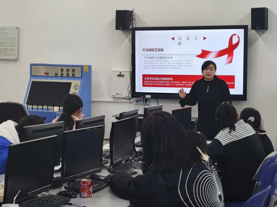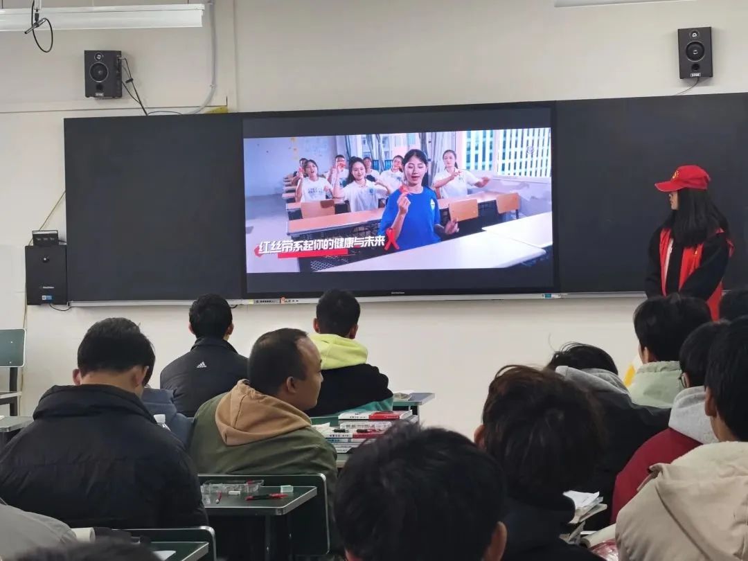 (张凤仙报道)盘江能源技师学院团委组织青年志愿者进入各班级普及防艾知识、组织观看艾滋病宣传小视频,受众达1000人次以上。