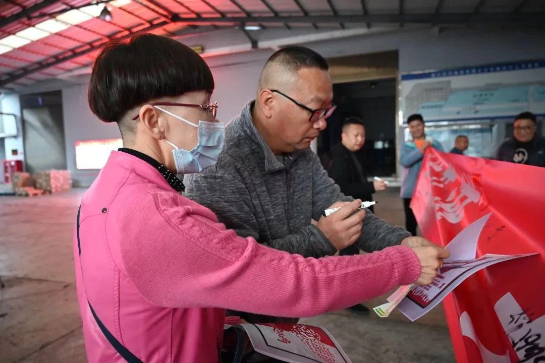 (曾红梅报道)矿机公司活动现场,职工们在“共抗艾滋共享健康”的宣传横幅上郑重签上了自己的名字。活动还进行现场知识问答,答对的职工每人发放一份纪念品。同时还发放各类防艾宣传资料100余份。
