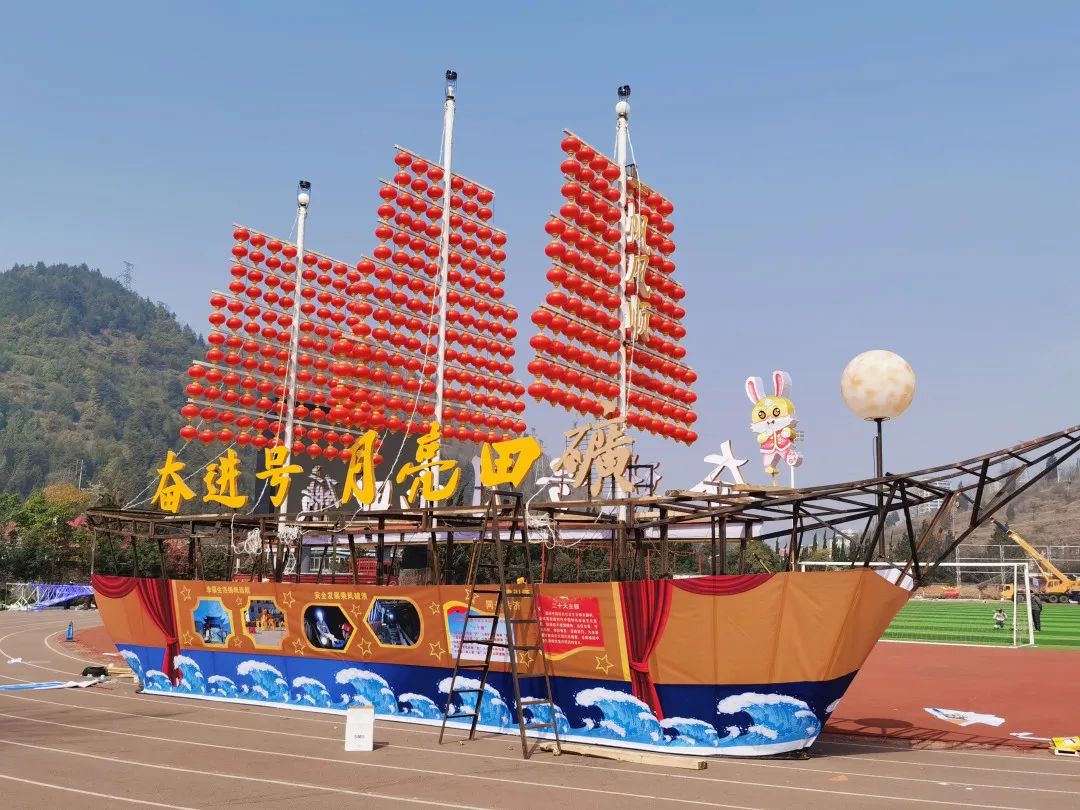 为在春节期间营造欢乐祥和的节日文化氛围,丰富广大职工群众的文化生活,该矿倾力打造别具一格、独具特色的灯展,紧扣主题对船的尺寸和内容进行了明确,力争活动既能营造欢乐喜庆的节日氛围,又能展示出月矿人踔厉奋发、蓬勃向上的精神风貌。