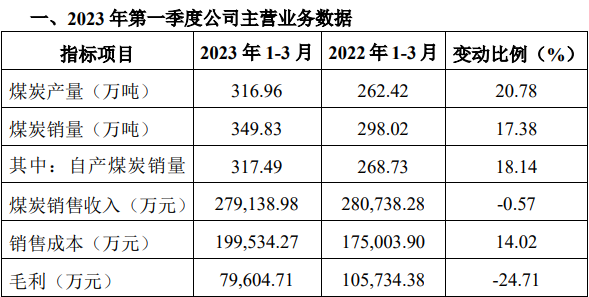 盘江股份:一季度煤炭销售收入27.91亿元,同比下滑0.57%
