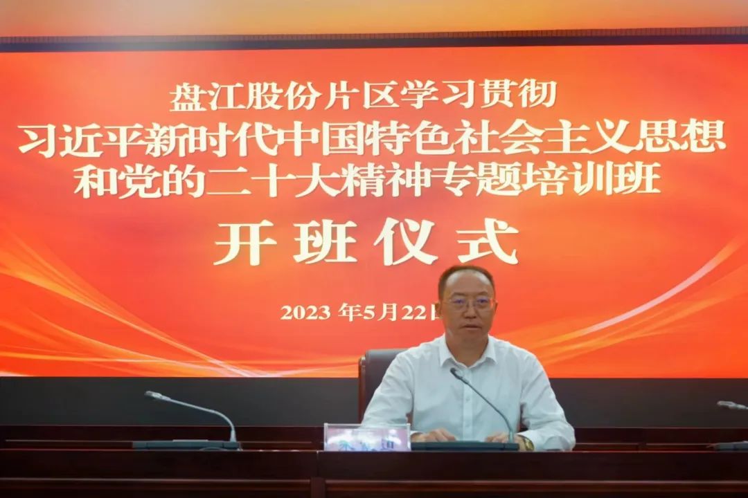 5月22日,盘江股份片区学习贯彻习近平新时代中国特色社会主义思想和党的二十大精神专题培训班开班。贵州能源集团党委委员,盘江股份党委书记、董事长朱家道出席开班式。