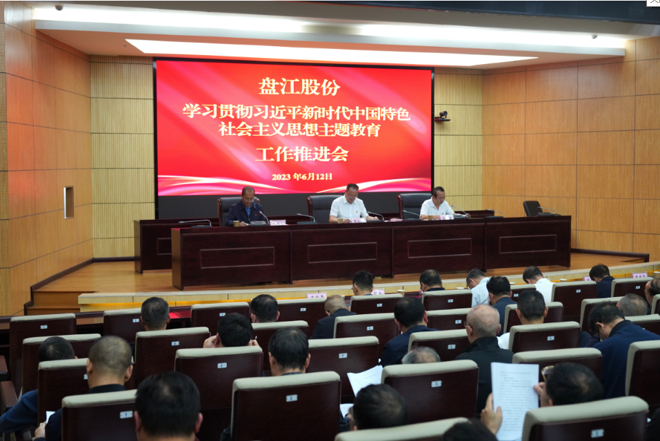 6月12日,盘江股份主题教育工作推进会在四楼多媒体会议室召开。会议深入学习领会、认真贯彻落实习近平总书记近期关于主题教育的重要讲话和重要指示批示精神,贯彻落实6月2日集团主题教育工作推进会精神。贵州能源集团党委委员,盘江股份党委书记、董事长、主题教育领导小组组长朱家道出席会议并讲话。盘江股份党委副书记、副董事长、主题教育领导小组副组长杨德金主持会议。