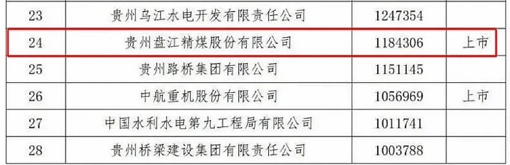 日前,贵州省企业联合会、贵州省企业家协会发布“2023贵州百强企业榜单”,盘江股份位居第24名。