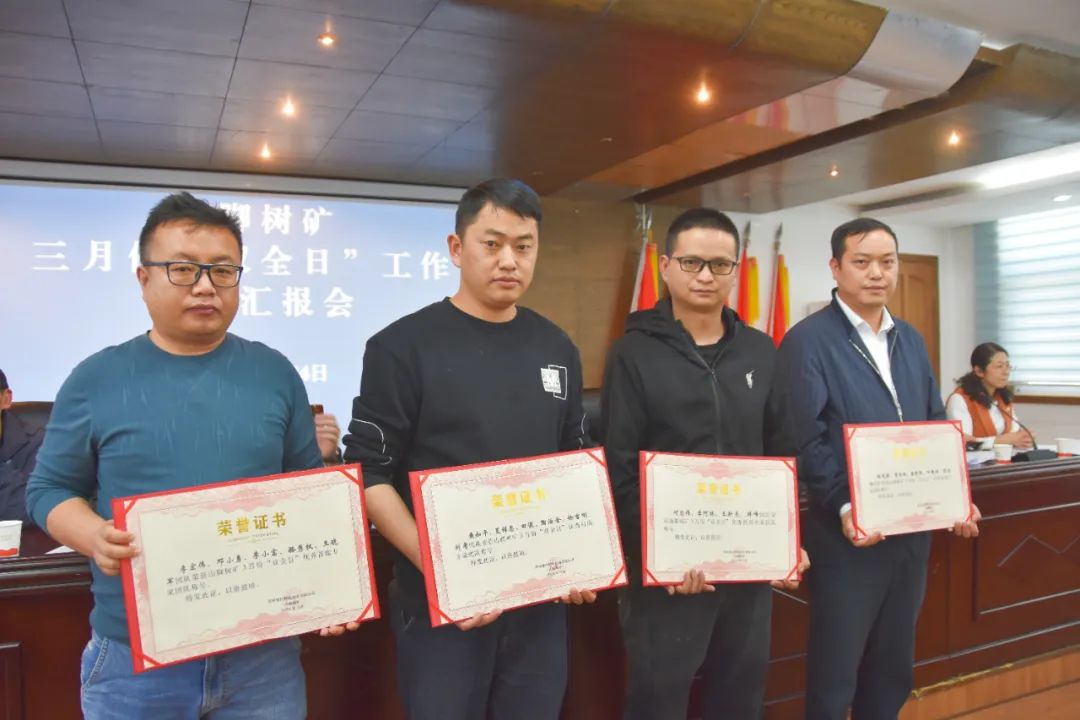 (李明志报道)3月24日,山脚树矿组织召开3月份“双全日”工作总结汇报会,对3月份8名优秀安全员、10名优秀现场安全管理员、16名优秀标准岗和4个优秀“首席专家团队”进行了表彰和颁奖。
