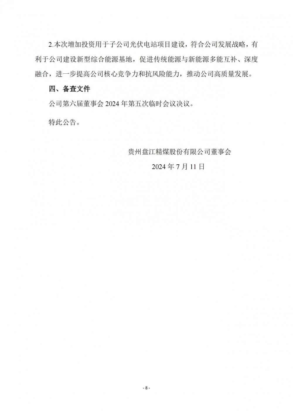 7月11日晚间,盘江股份发布关于向子公司增加投资的公告。