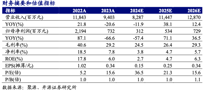 公司发布2024年中报,2024H1公司实现营业收入40.5亿元,同比-23.6%;实现归母净利润0.37亿元,同比-94%;实现扣非后归母净利润-0.46亿元,同比-108.2%。单Q2来看,公司实现营业收入21亿元,环比+7.6%;实现归母净利润0.16亿元,环比-25.2%,实现扣非后归母净利润-0.48亿元,环比-1944.8%。考虑到煤炭产量下滑,我们下调2024-2026年盈利预测,预计2024-2026年公司实现归母净利润3.1/5.3/7.3亿元(前值为7.7/9.9/12.0亿元),同比-57.4%/+71.1%/+36.5%;EPS分别为0.15/0.25/0.34元,对应当前股价PE为36.5/21.3/15.6倍。公司煤炭产能稳步增长,煤-电-新能源一体化稳步发展,维持“买入”评级。
