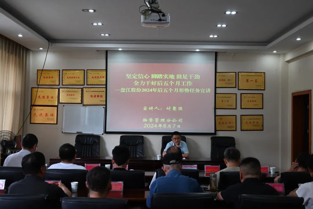 近日,物资管理分公司在储运中心开展了形式任务宣讲活动,进一步统一思想、凝聚力量,为盘江股份后五个月的工作目标任务顺利完成奠定坚实基础。