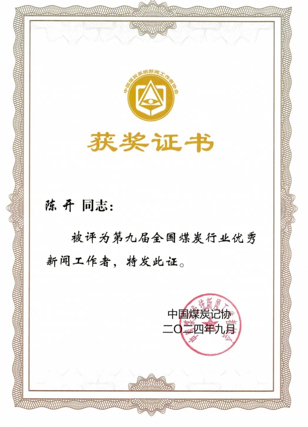 近日,中国煤炭系统新闻工作者协会公布了第九届全国煤炭行业优秀新闻工作者名单。其中盘江股份党委宣传文化部陈开、山脚树矿李明志荣获全国煤炭行业“优秀新闻工作者”称号。