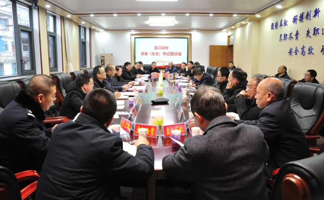 12月13日,盘江股份党委(总支)书记座谈会在火铺矿召开。会议由盘江股份党委副书记、工会主席张艳东主持,各单位党委(总支)书记、机关党委书记及机关党群部门负责人参加会议。
