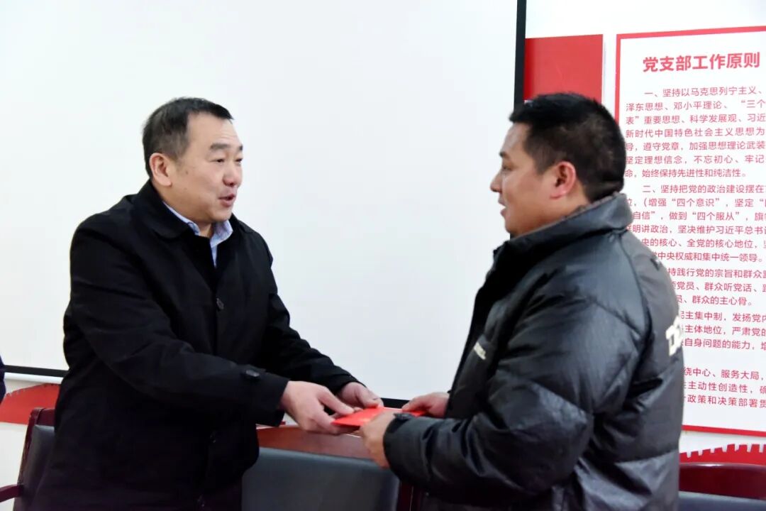 在盘州新能源,刘文学慰问盘江股份2025年度优秀共产党员董霏飞,对他在2025年安全环保工作岗位上尽职尽责,守住安全环保底线,展现出的敬业精神和先锋模范作用给予充分肯定,同时希望他继续发挥党员带头示范作用,新的一年里立足本职岗位再创佳绩。(郭祖龙报道)