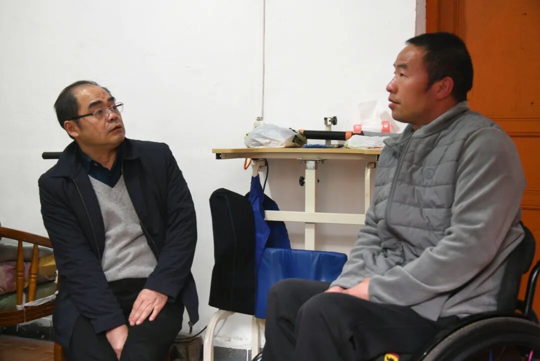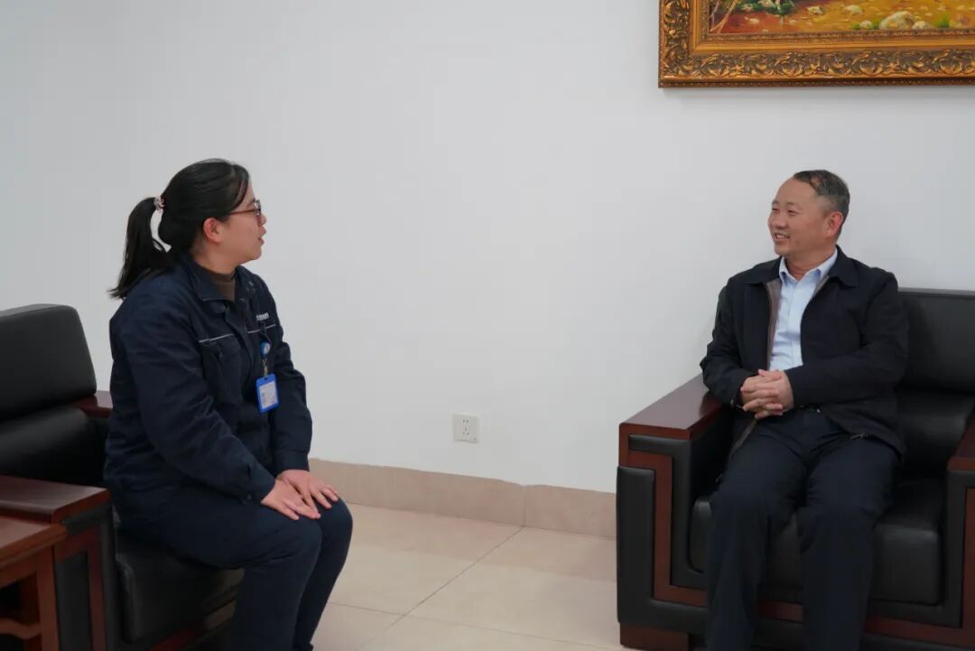 在技师学院,杨秀科与职工促膝长谈,详细询问其家庭生活、身体状况及实际困难,耐心倾听诉求,鼓励职工保持乐观心态,勇敢面对挑战。(浦冬春鲍安玺报道)