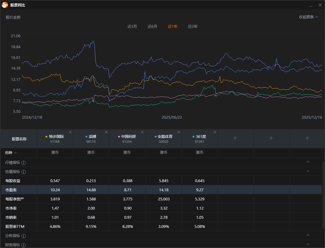 不过,根据银河做出的业绩预测,公司目前的pe约13倍,对应股息率3%,26年pe12,对应股息率约6%(按24年分红水平计算)。这一水平在港股同行里并不算突出。滔搏这几年都是100%payout,361和中国利郎的股息率也不低,估值也不高。