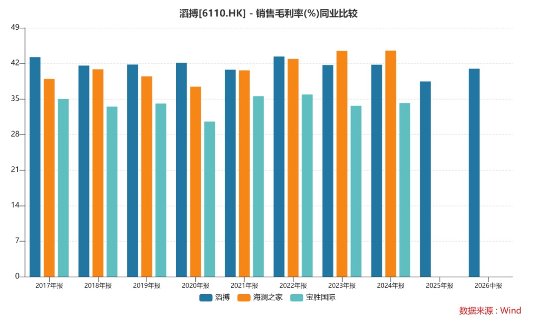对比宝胜国际和滔博这类专业分销商,独家代理阿迪达斯FCC系列的零售业务占比越大,海澜之家毛利率下滑的风险也可能越大。