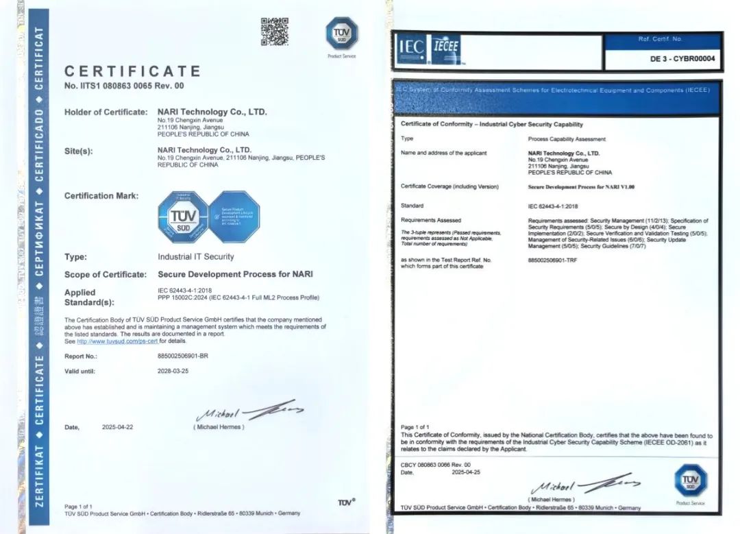 4月28日,国电南瑞获国际知名专业检测认证机构TüV南德意志集团(以下简称“TüV南德”)颁发的IEC 62443-4-1网络安全产品开发生命周期Maturity Level 2(ML2)成熟度二级证书,标志着国电南瑞在工业信息安全领域的技术实力和产品安全性达国际领先水平,进一步提升了南瑞在全球市场的竞争力。