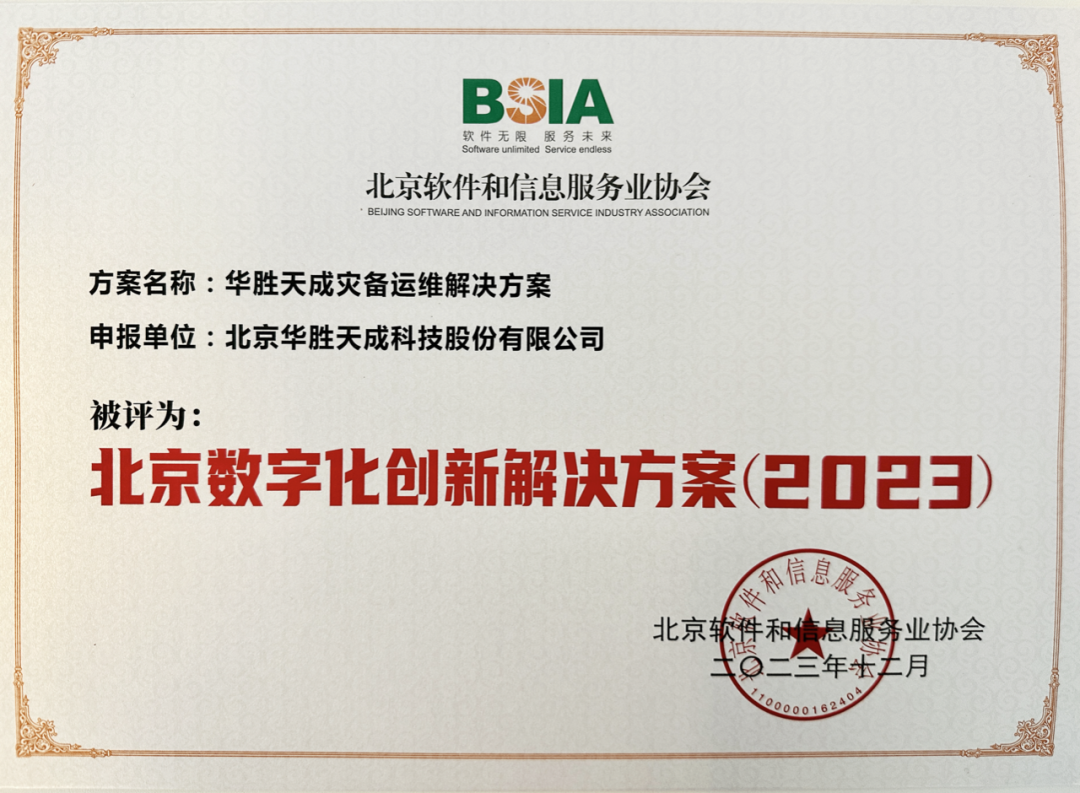 华胜天成灾备运维解决方案入选“北京数字化创新解决方案(2023)”