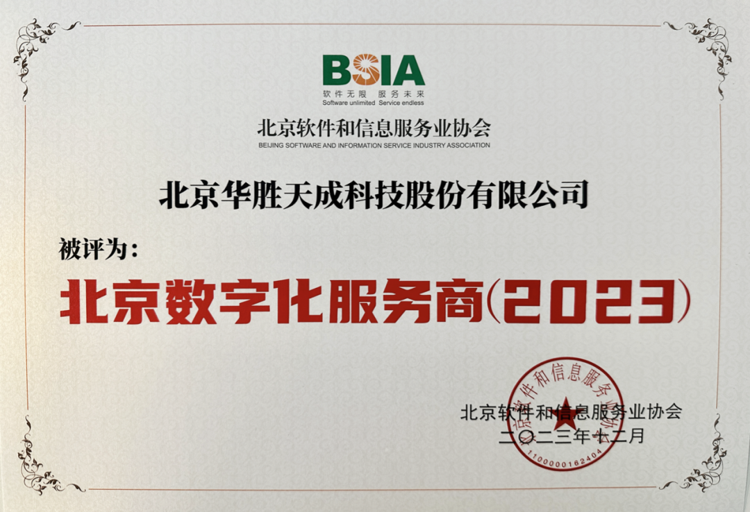华胜天成入选“北京数字化服务商(2023)”