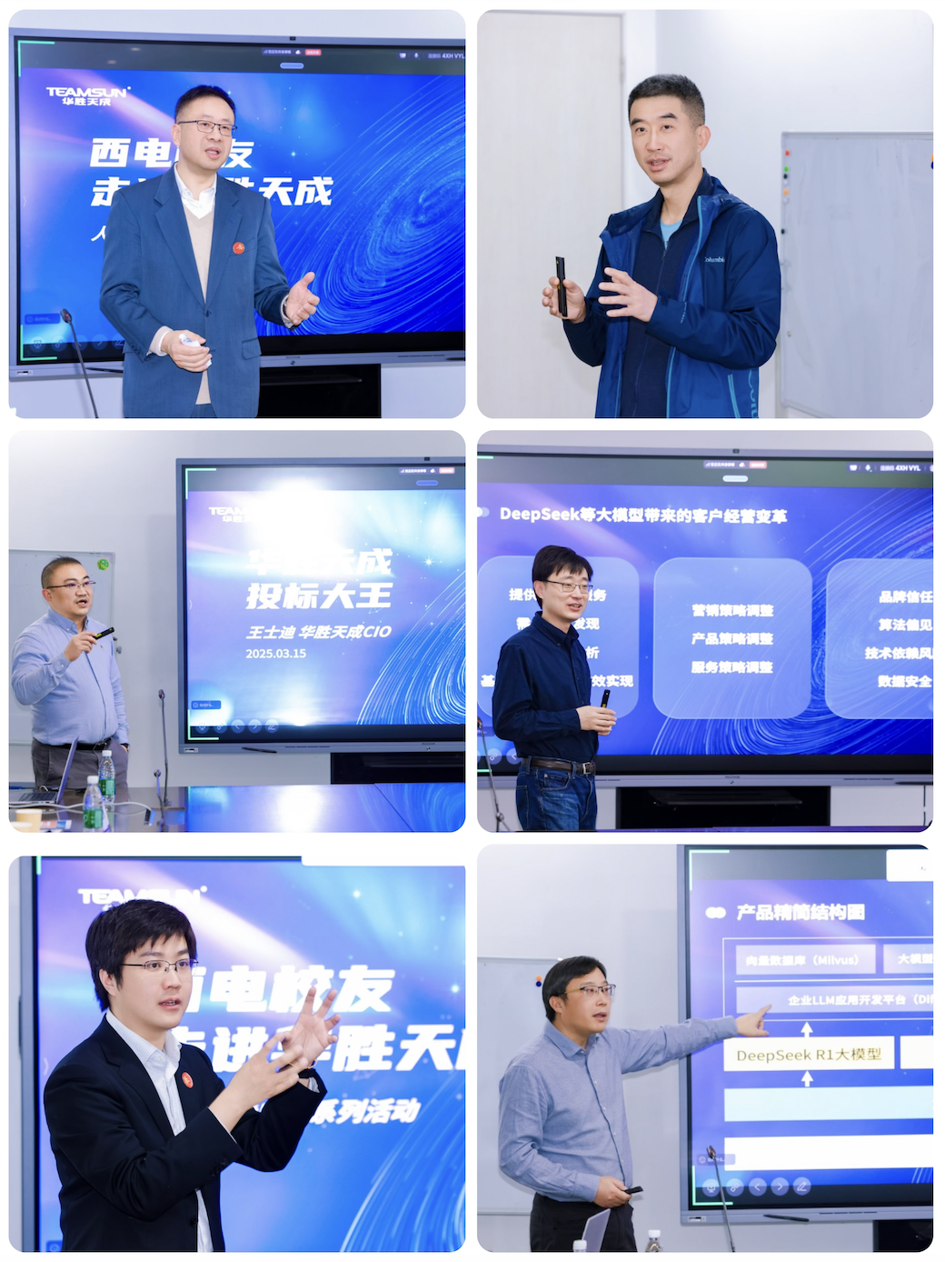 本次大会上,华胜天成助理总裁、西安电子科技大学84级校友郭涛向校友们详细介绍了公司的AI战略,各大产品线负责人向与会嘉宾分享了覆盖不同业务领域和应用场景的AI产品。