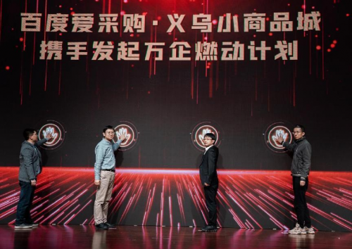 活动现场,百度集团副总裁、移动生态商业体系负责人王凤阳、浙江中国小商品城集团股份有限公司党委委员、副总经理龚骋昊、百度B2B业务副总经理甘露、义乌中国小商品城大数据有限公司总经理赵炜共同发布“万企燃动计划”。该计划将以百万产品补贴、百亿流量扶持、进阶培训服务和先锋案例打造四大举措数字赋能中小企业,优先帮助义商在消费品行业实现开年抢跑,加速促进数字经济和实体产业的创新融合,为义乌消费品产业数字化发展探索更多可能。