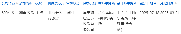 据上交所网站显示,湘电股份(600416.SH)非公开发行股票于7月18日获通过。