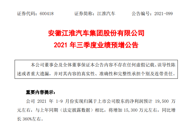 但值得注意的是,该业绩预增公告中,江淮汽车称业绩增加,主要是因报告期内公司主动调整产品结构,优化资源配置,严格加强成本费用管控,从而提升产品盈利能力,主营业务毛利增加约1.53亿元,其他业务毛利增加约1.90亿元。