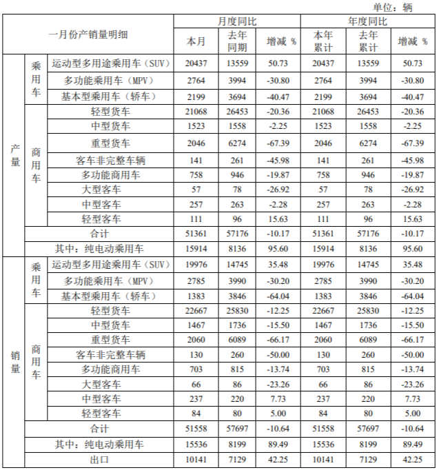 2月11日,安徽江淮汽车集团股份有限公司(以下简称“江淮汽车”)发布2022年1月产、销快报,江淮汽车1月汽车销量合计约5.16万辆,同比下降10.64%;1月汽车产量合计约5.14万辆,同比下降10.17%。