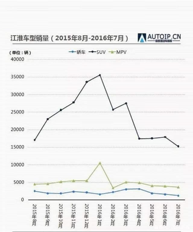 2016年前7个月的销量占比为7.25%,SUV的比例占据了75%,虽然有增幅47%,但以MPV为代表的瑞风S3增幅仅为4.4%,曾经的小型SUV的优势已经在缩小,逐步减少。这时候的江淮汽车并没有“穷则思变”,反而是靠政府补贴的25亿元在财务上显示利润8.58亿元;相反,如果没有这笔补贴,亏损16.42亿元,已是实打实的结果。