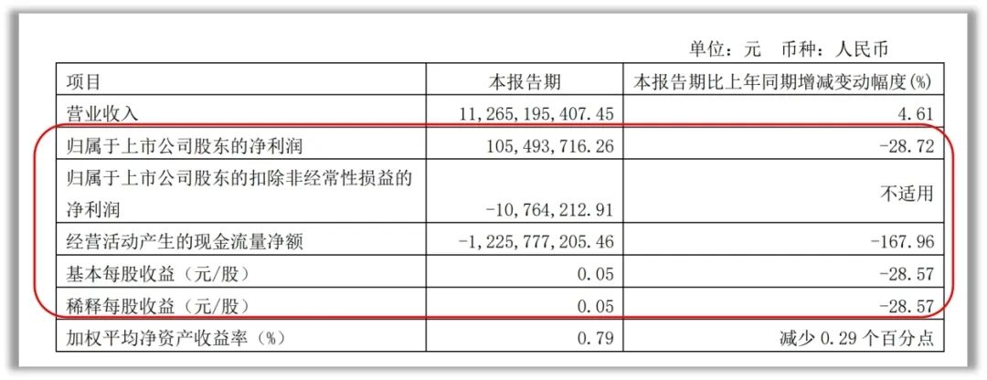 今年一季报则是江淮汽车失去蔚来后的数字,虽然营业收入112.65亿元,同比还是增长了4.61%,但净利润同比暴跌28.72%、只有1.05亿元;经营活动产生的现金流量净额更是减少了167.96%,基本每股收益与稀释每股收益都减少了28.57%(图4)。