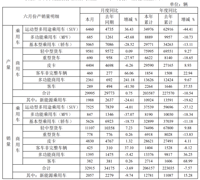 本年累计销量206157辆,同比下降7.57%。其中,新能源乘用车销量12781 辆,同比增长15.28%。