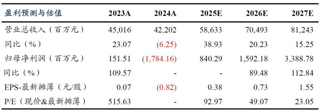 公司2025Q1实现营业收入98.18亿元,同环比分别-13.0%/-1.1%;归母净利润为-2.23亿元;扣非后归母净利润-2.87亿元(2024Q1为-0.11亿元,2024Q4为-25.1亿元)。