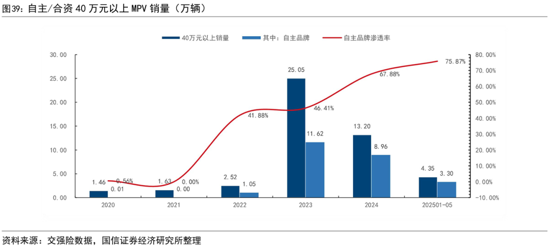 综上,超豪华赛道仍处于自主品牌蓝海,而豪华MPV赛道也具备一定市场规模。