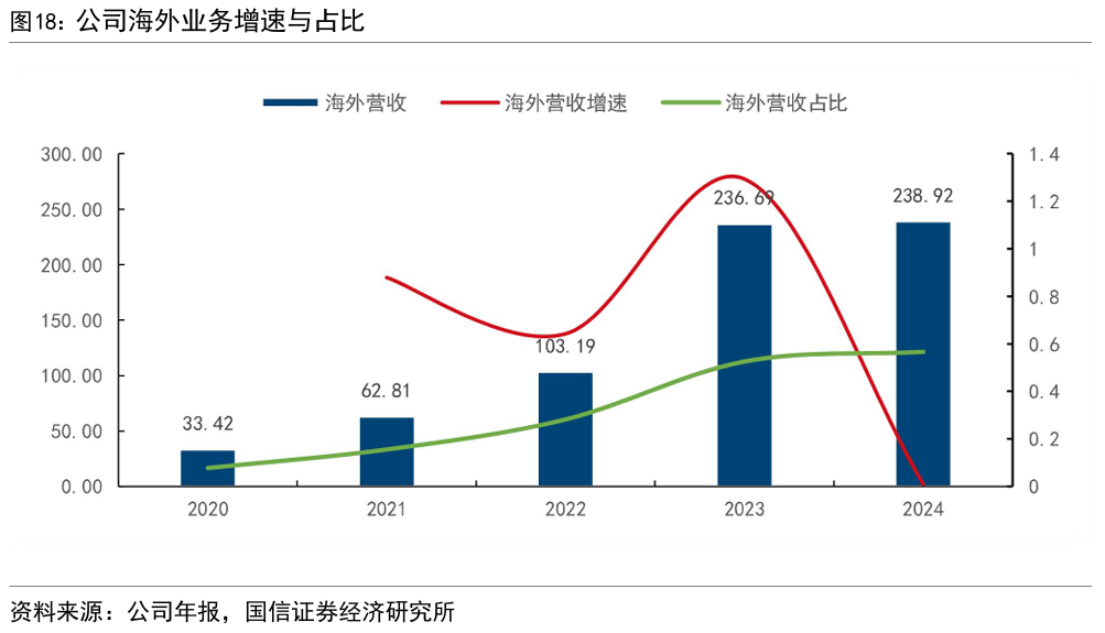 出海方面,海外营收高速增长,近两年占比过半。公司出海业务高速增长,海外营收增速在2021-2023年分别达到了88%/64%/129%,海外营收在2023/2024年占比过半。商用车、乘用车在海外业务中都扮演了重要角色。