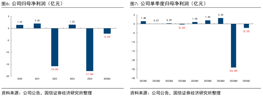 公司2024年归母净利润-17.84亿元,扣非归母净利润-27.41亿元,2025年Q1归母净利润-2.23亿元。2024年,公司实现归母净利润亏损17.84亿元,一方面是尊界业务处于大力投入阶段且车型尚未发布无产出,另一方面,公司计提了资产减值,以及大众安徽有较大亏损。2024年,公司计提11.46亿元减值,其中来自合同资产和无形资产的减值较大;公司持有大众安徽25%股权,2024年公司对大众安徽的投资收益产生亏损达13.5亿元;剔除减值和大众安徽影响,公司保持了小幅正收益,以及小幅扣非后亏损。