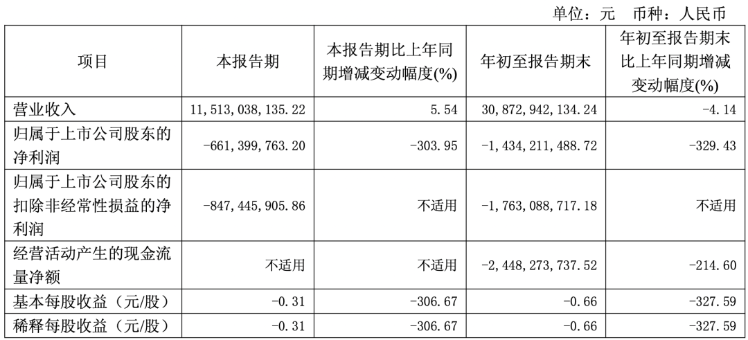 其经营活动产生的现金流量净额,相较去年同期也由正转负,为-24.48亿元。