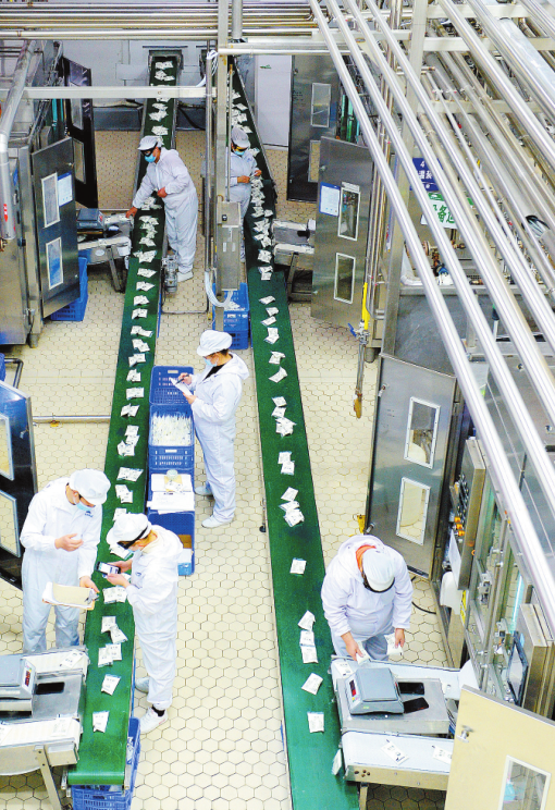 12月8日,新疆天润乳业股份有限公司工人在生产车间作业。