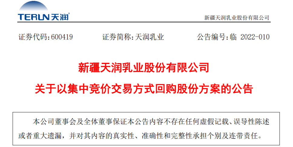日前,天润乳业发布公告,拟通过上海证券交易所系统以集中竞价的方式回购公司股份,用于员工持股计划或股权激励。