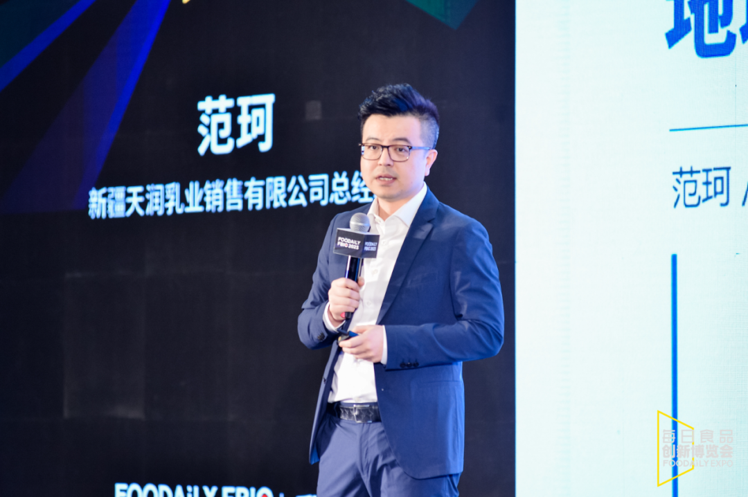 第八届Foodaily FBIC全球食品饮料创新大会上,新疆天润乳业销售有限公司总经理范珂作了主题为《地域奶,是坚守本地还是走出本地》的演讲,向大家分享了企业在产品创新、疆外市场突破等方面的经验,并对那些想在外埠市场有所作为的区域乳企提出了四点发展建议。